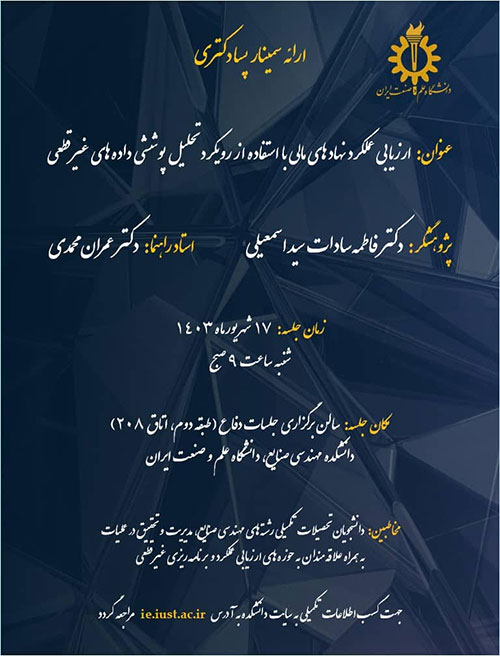 مکان: سالن دفاع دانشکده مهندسی صنایع دانشگاه علم و صنعت ایران (طبقه دوم-اتاق ۲۰۸)